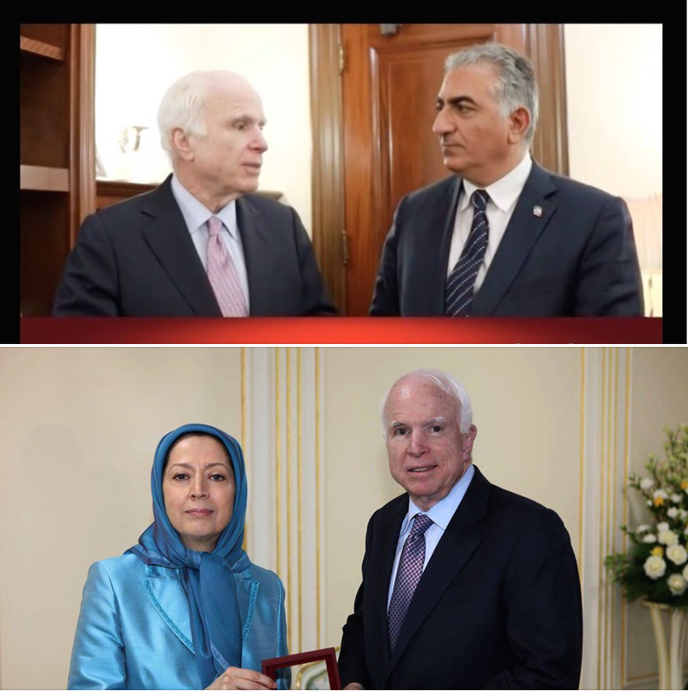 داریوش اقبالی در کنار مهدی آقازمانی مدیر تلویزیون رضا پهلوی