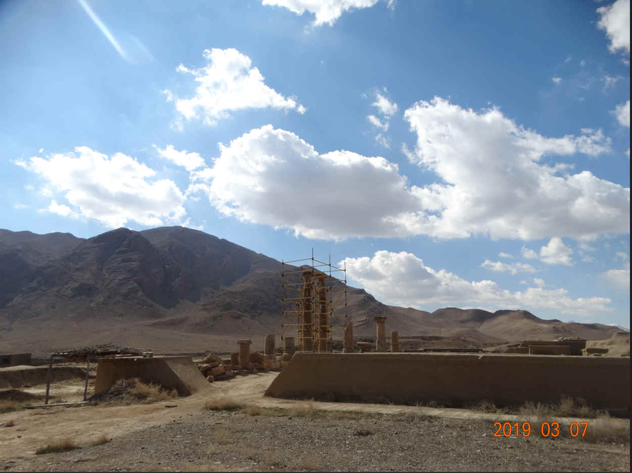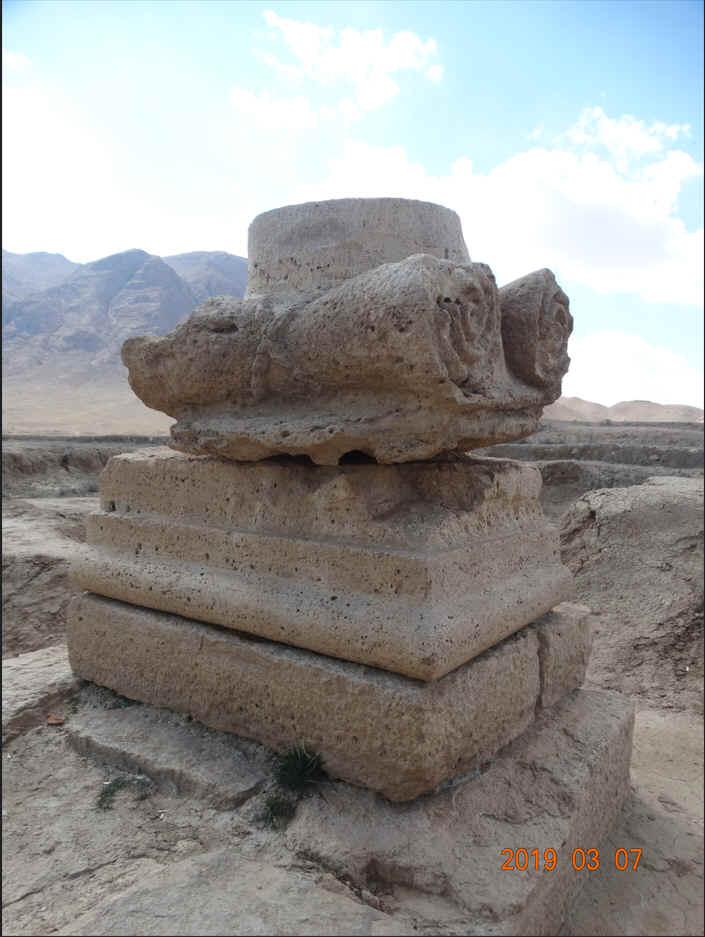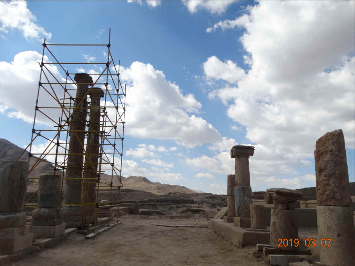بقایای این ستون ها فاقد شیار و نقش و نگارها به سبک آثار موجود در تخت جمشید بوده و از پایه ستون به طرف بالا به کل مخروطه ناقص باریک می شده است.