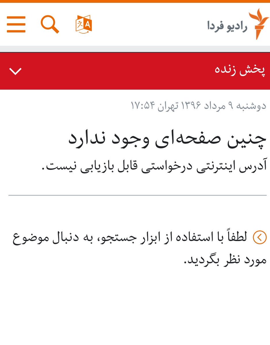 عکس بالا؛ همصدایی رادیو فردا با بلندگوهای دروغ پراکنی فاشیست های اسلامیست. عکس سایت پاکسازی شدۀ رادیو فردا از آن همصدایی با بلندگوهای دروغ پراکنی فاشیست های اسلامیست اینجا.