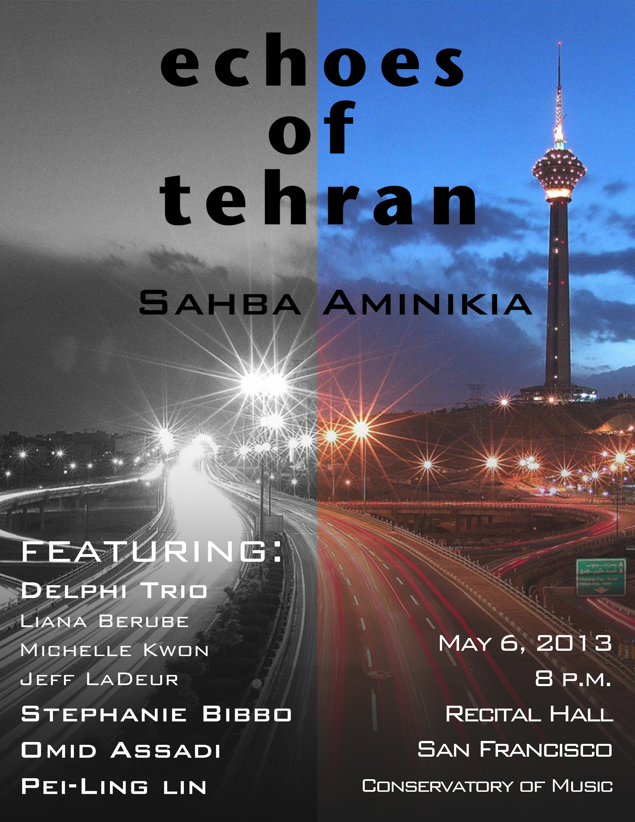 Come and hear the echoes of Tehran. An evening full of voices, sounds and melodies from Tehran, composed and compiled by Sahba Aminikia.