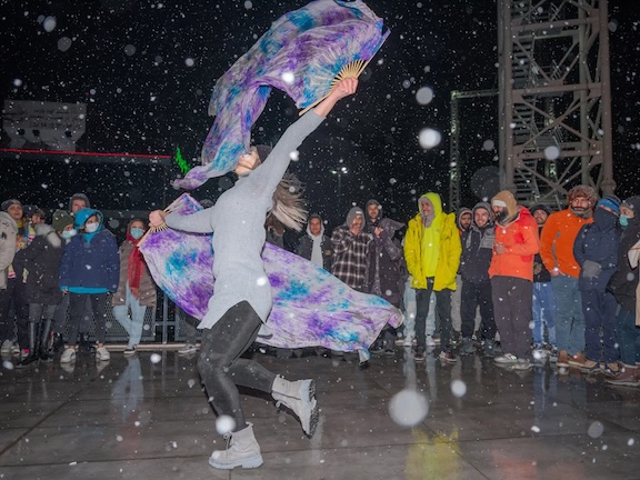 Sogol performs flow art at a park in northern Tehran on Jan. 20, 2022. Forough Alaei