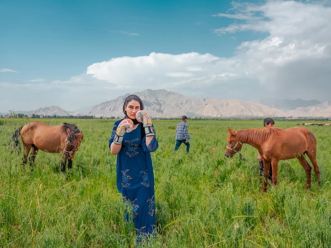 Sahar Rashidi, a 31-year-old kickboxer, poses wearing her boxing gloves in Kermanshah, western Iran, on May 20, 2024. Born into a nomad family, Sahar started secretly fighting as a Kungfu fighter in a sport club in the city. In time, she became fond of kickboxing. Sahar had dozens of championships in kickboxing and became a role model for other nomad girls. She is now in Iran’s national team and a trainer in a club in Kermanshah.Forough Alaei