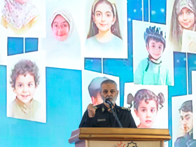 Chief of Staff of Iran's Armed Forces speaks at an event to commemorate those killed by Israeli strikes