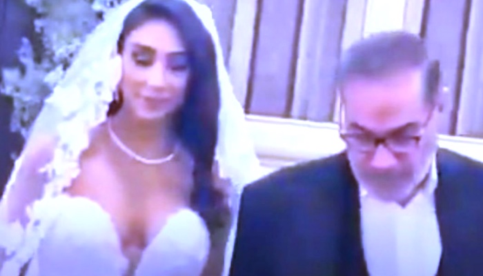 این عکس بسیار گویاست. مساله فقط این نیست که عروس بی حجاب است و باصطلاح لباسی "سکسی" بر تن دارد. سبک عروسی غربی است. حرکت دست در دست پدر با عروس بسوی داماد و باصطلاح تحویل دادن عروس به داماد سنتی غربی است. نه سنت مسلمانان است و نه سنت ایرانی. چرا یکی از قدرتمندترین مردان رژیم تصمیم می گیرد در عروسی دخترش سنت غرب را پیاده کند؟ این تصویر هالیوودی آیا تصادفی است؟ هوس عروس است؟ بنظر می رسد که این سناریو هدفمند است. پیامی ارسال می کند؛ نه فقط دهن کجی وقیحانه به مردم؛ پیام آمادگی پذیرش استحاله به آمریکاست.