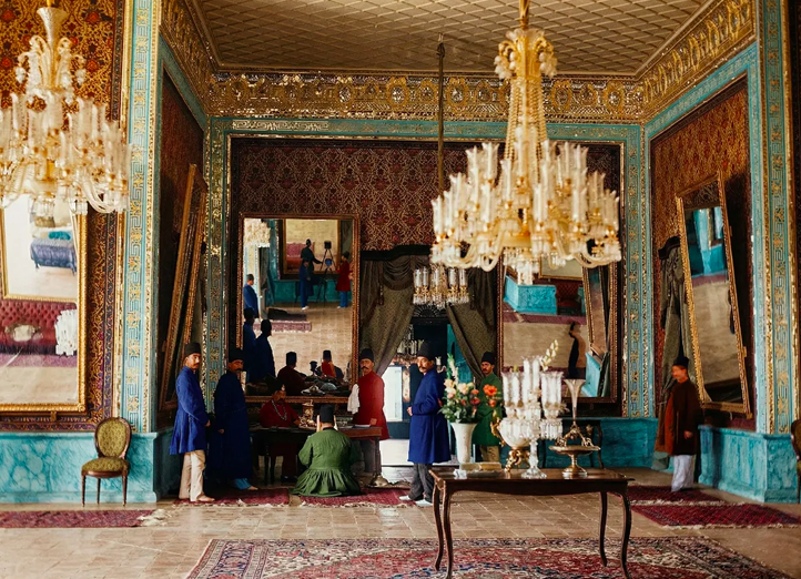 Interior of the Sahebgharaniyeh Palace, circa 1860 by Antoin Sevruguin -