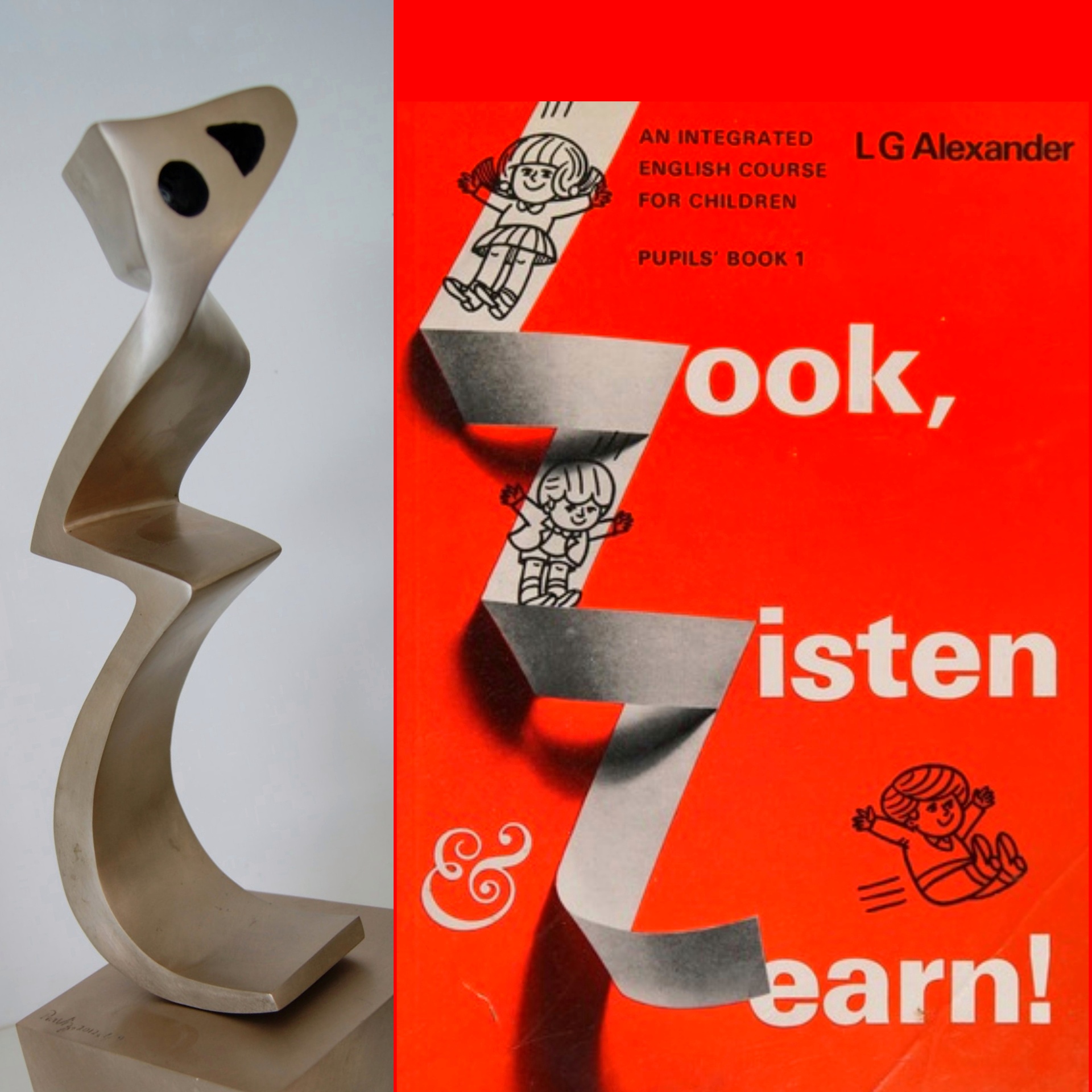 It places me firmly in the 1970s, when English education was aspirational, modern and visually bold. The red cover, the playful figures sliding along a zig-zag Ls, the command verbs, look, listen, learn, all signal movement, progress and an invitation into another world.