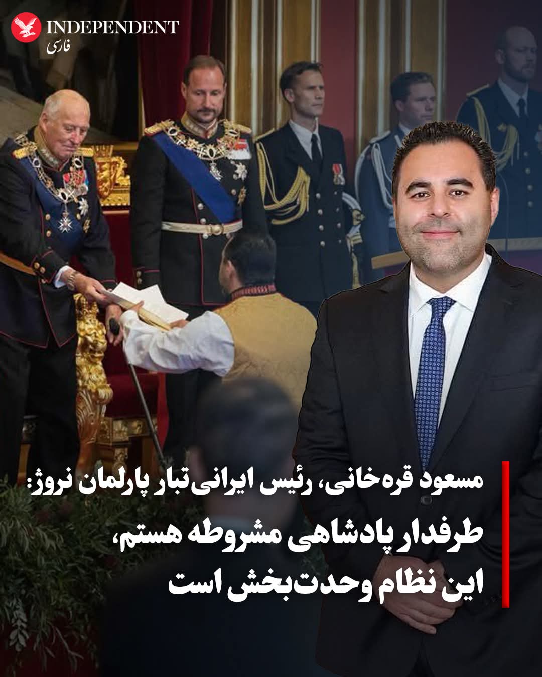 مسعود قره خانی، رئیس ایرانی تبار پارلمان نروژ در پیامی در حمایت از پادشاهی مشروطه