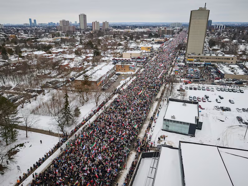 Toronto police say a man has been arrested for making online threats targeting a mass rally held Saturday against Iran’s crackdown on widespread protests in that country.