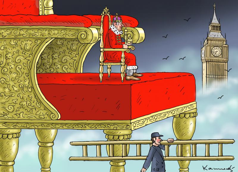 The triple portrait may have commanded the young Prince Charles’s attention because of his royal precursor’s lurid fate: Charles I had the distinction of being the only British king to be tried for treason and executed. He was sentenced to death by a High Court of Justice, set up by a Parliament that he had antagonized by dissolving it repeatedly, which helped bring about devastating years of civil war. On November 18, 1648—nearly three hundred years to the day before the birth of Charles, on November 14th—the King’s opponents argued in the House of Commons that “the Person of the King may and shall be proceeded against in a way of justice for the blood spilt.” After a brief trial, the royal head was publicly severed from the royal shoulders, on a scaffold outside the Banqueting House. The monarchy was abolished a week later, the office of the king declared by the Commons as “unnecessary, burdensome, and dangerous to the liberty, safety, and public interest of the people of this nation.” The Puritan republic lasted only eleven years, after which Parliament voted to install on the throne Charles II, the licentious eldest surviving son of the deposed king. But the powers of the restored monarchy were more limited, and by the late seventeenth century the Glorious Revolution had affirmed the idea that British kings and queens retain their crowns only by the consent of the people.