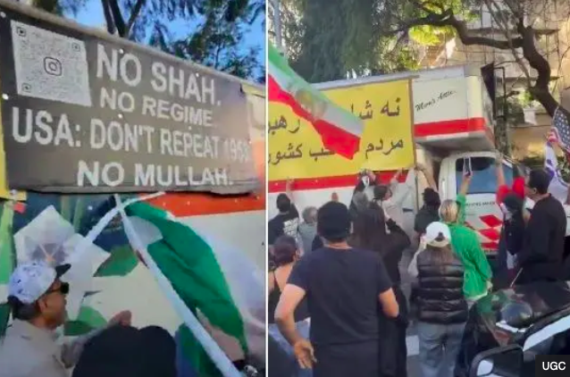 «ماموران گشت اداره پلیس لسآنجلس از واحد غرب لسآنجلس در حال نظارت بر تجمعی در حمایت از اعتراضات جاری در ایران بودند که یک کامیون باری در مسیر شرقبهغرب خیابان اوهایو به سمت خیابان ویتران حرکت کرد. ماموران خودرو را متوقف کرده و به راننده دستور دادند دور بزند، زیرا در حال نزدیک شدن به جمعیت بزرگی از معترضان بود. روی بدنه کامیون نوشتههایی نصب شده بود که با دیدگاههای جمعیت معترض مخالفت میکرد. معترضان این نوشتهها را از روی کامیون کنده و به راننده حمله کردند.»