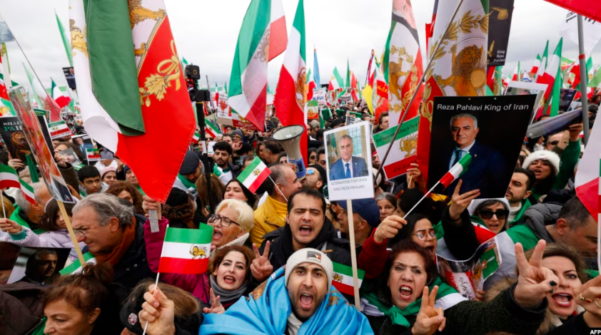 A much smaller protest was held on February 13 by the National Council of Resistance of Iran, which denounced both the current Iranian authorities and the idea of monarchist rule.