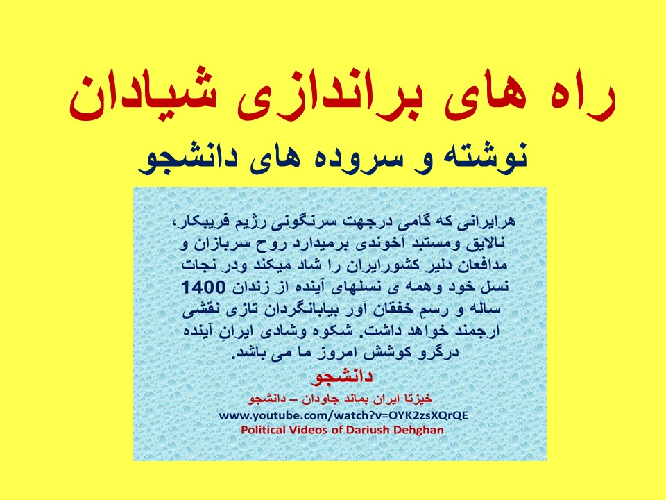 - مردم جهان را باخبرکنیم که رژیم آخوندی نماینده ی اندیشه وکردار وخواست ایرانی نبوده ونیست.
