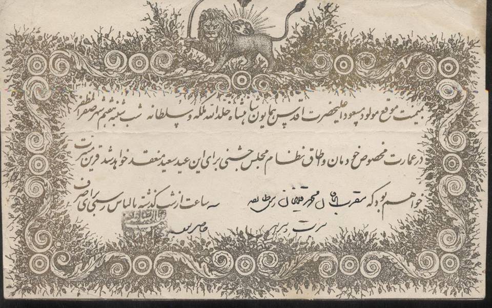 کارت دعوت جشن مولود ناصرالدین شاه