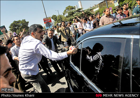 حمله اعضای بسیج دانشجویی به خودروی حسن روحانی پس از بازگشت از نیویورک6