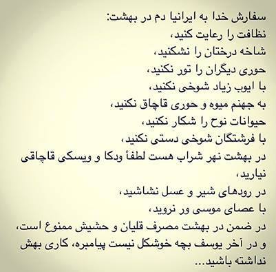 توکا نیستانی - برایِ جلبِ گردشگران خارجی طرح ارشاد توریستهای خارجی اعلام شد. به ایران سفر کنید و بازداشت شده و مهمانِ پلیس ارشادِ امرِ به معروف و نهیِ از منکر باشید! :-)