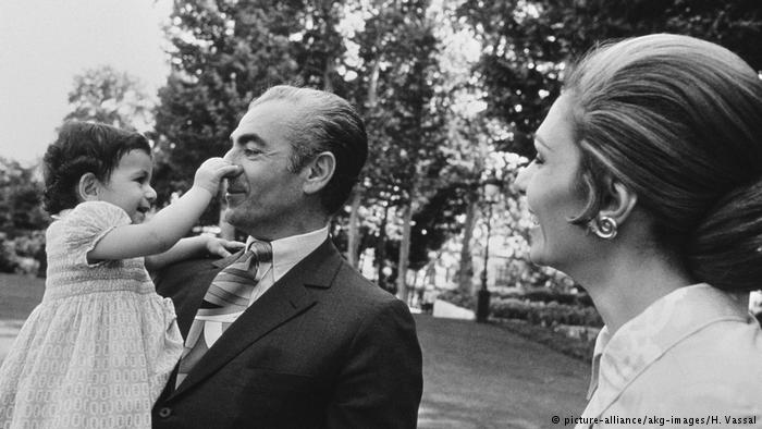لیلا پهلوی یک ساله با دماغ پدرش بازی میکند. این عکس در ماه مه سال ۱۹۷۱ در محوطه کاخ نیاوران برداشته شده است. "دماغ بزرگ اعلیحضرت" دستمایه مبارزات ضد سلطنتی نیز بود.