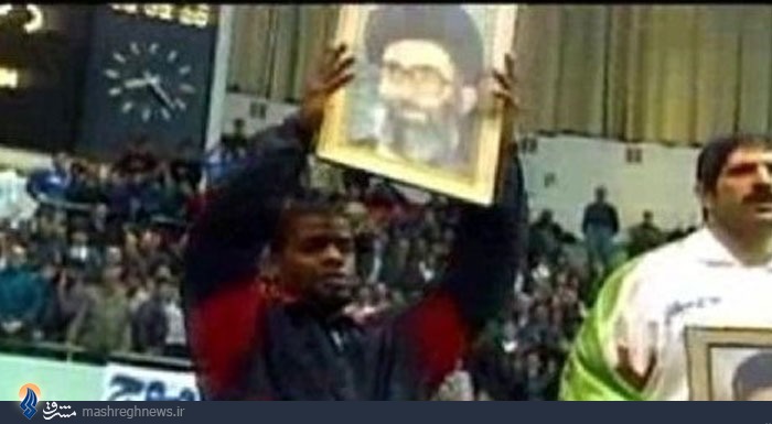 هوا کردن عکس معظم مقام رهبری توسط کُشتی گیر آمریکایی (تهران ۱۹۹۸)