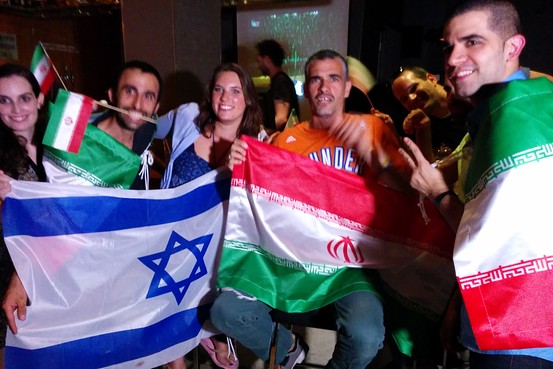 هواداران اسرائیلی (در تل آویو) تیم ایران هنگام بازی با بوسنی