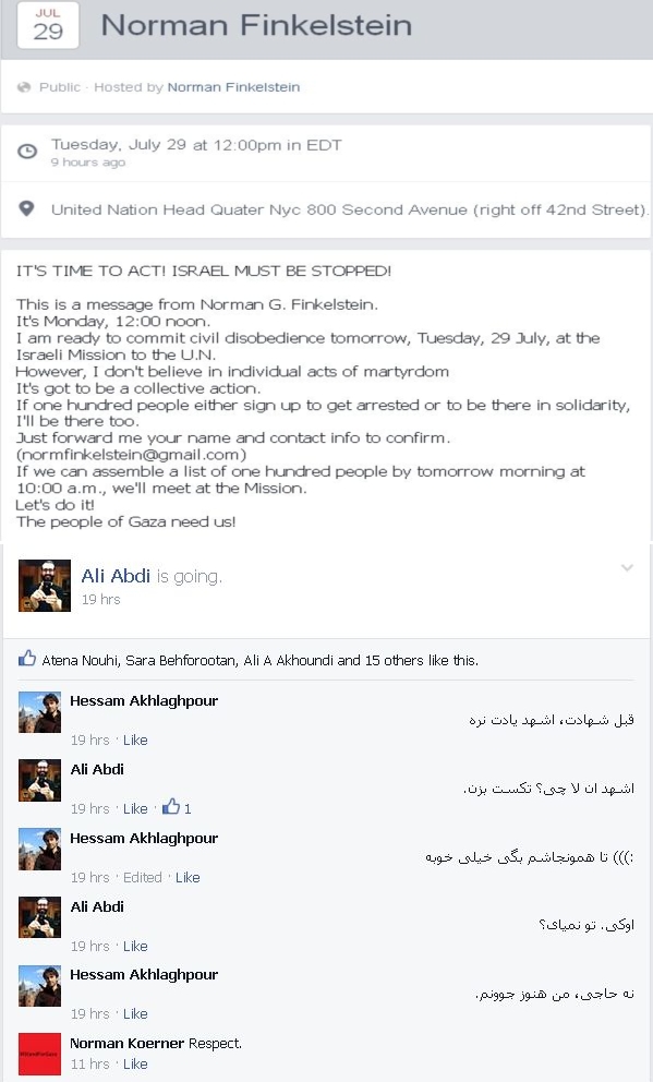 عکس العمل دو ایرانی در فیس بوک به فراخوان نافرمانی مدنی در نیویورک علیه حملات اسرائیل