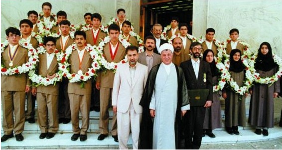 مریم میرزاخانی درکنار هاشمی رفسنجانی، حداد عادل و نجفی پس از المپیاد ۱۳۷۴ (و عاقبت دختران برندۀ دیگر)