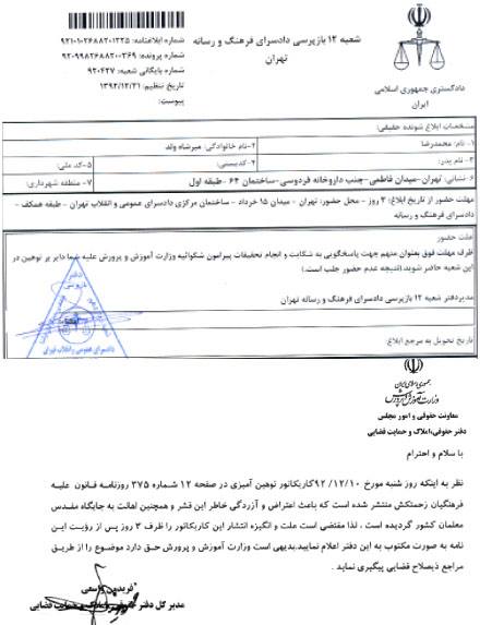 شکایت از روزنامۀ قانون به دلیل چاپ این کاریکاتور2