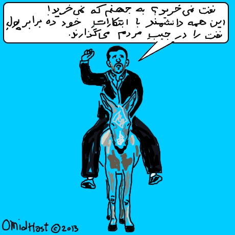 محمود احمدی نژاد، رئیسِ جمهورِ جمهوری اسلامی ایران، امروز پس از افتتاحِ چند طرحِ عمرانی در همدان گفت: «نفت نمیخرید؟ به جهنم که نمیخرید! بهتر که نمیخرید! ما مردم را به میدان میآوریم و میگوئیم که نمیفروشیم. مگر طی این همه سال که مردم ما افتخار آفریدند با نفت زندگی کردهاند؟ این همه دانشمند با ابتکاراتِ خود ۱۰ برابرِ پولِ نفت را در جیبِ مردم میگذارند.» >>>
