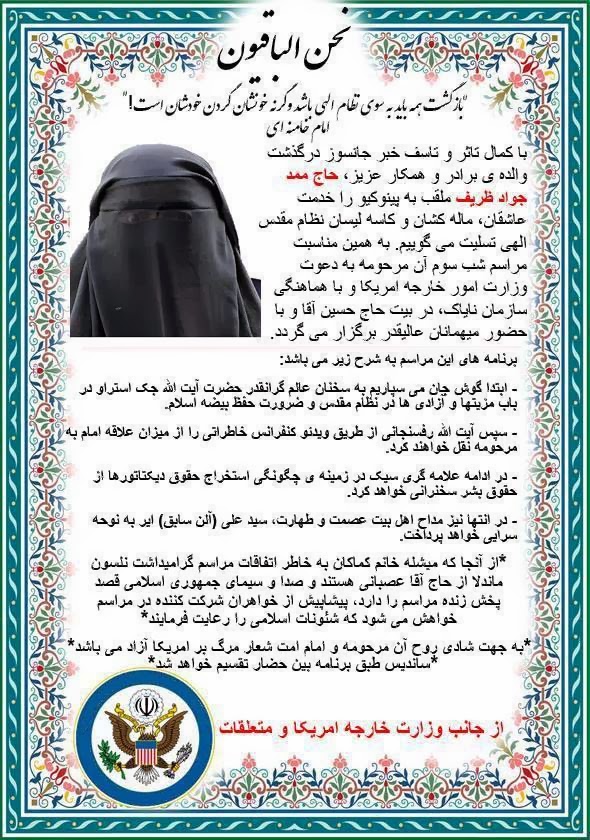 اطلاعیه ی دیدنی وزارت امور خارجه آمریکا در خصوص درگذشت مادر جواد ظریف!